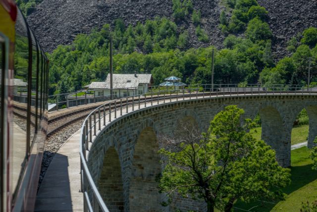 תחנת Brusio – תחנה ליד גשר הספירלה המפורסם Brusio Spiral Viaduct