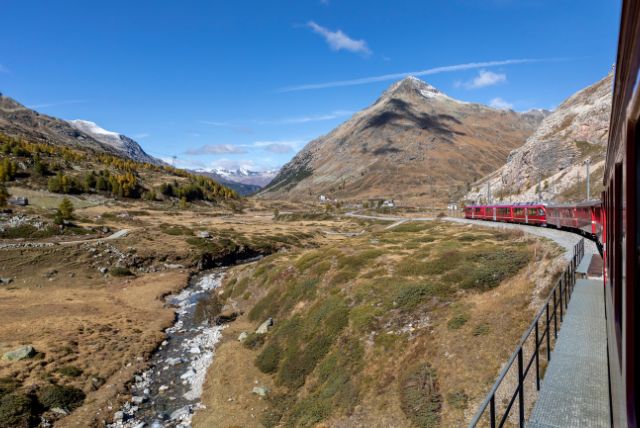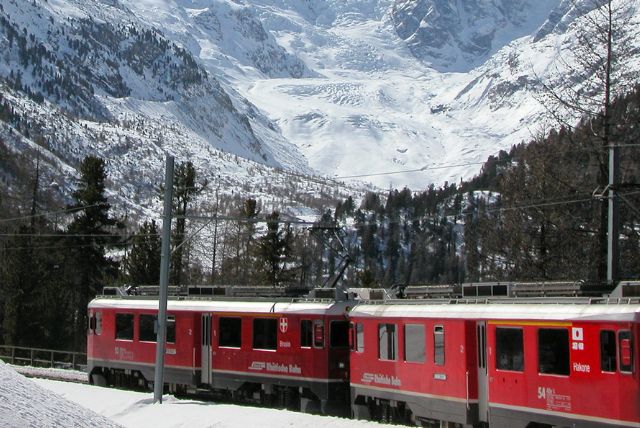 בימים בהירים ניתן לראות קטעים מקרחון מורטרץ' (Morteratsch Glacier) ומרכס ברנינה עצמו. התחושה היא של נקודה קטנה בתוך מרחב עצום, והנוף הנשקף מהרציף מדגיש עד כמה הרכבת הזו חוצה אזורים שבאופן רגיל נגישים רק למטפסי הרים או גולשי אקסטרים.